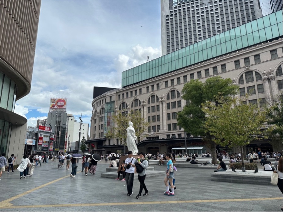 2025年9月21日(日)に研究室のM2・1名、M1・1名、B4・4名、B3・7名、萩原で、ゼミ旅行(縮小バージョン)として大阪なんば広場や御堂筋、グラングリーン大阪の視察に行いました。今回は、なんば広場の取り組みや視察について、M1家田が報告します。なんば広場では、ハートビートプラン岸本さんにお話を伺いました。